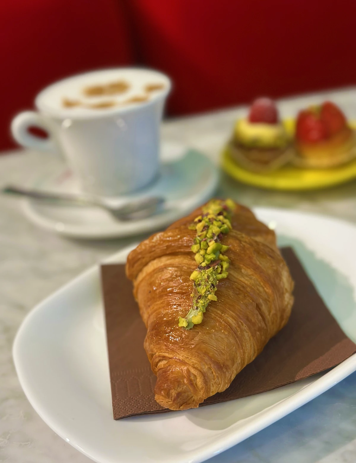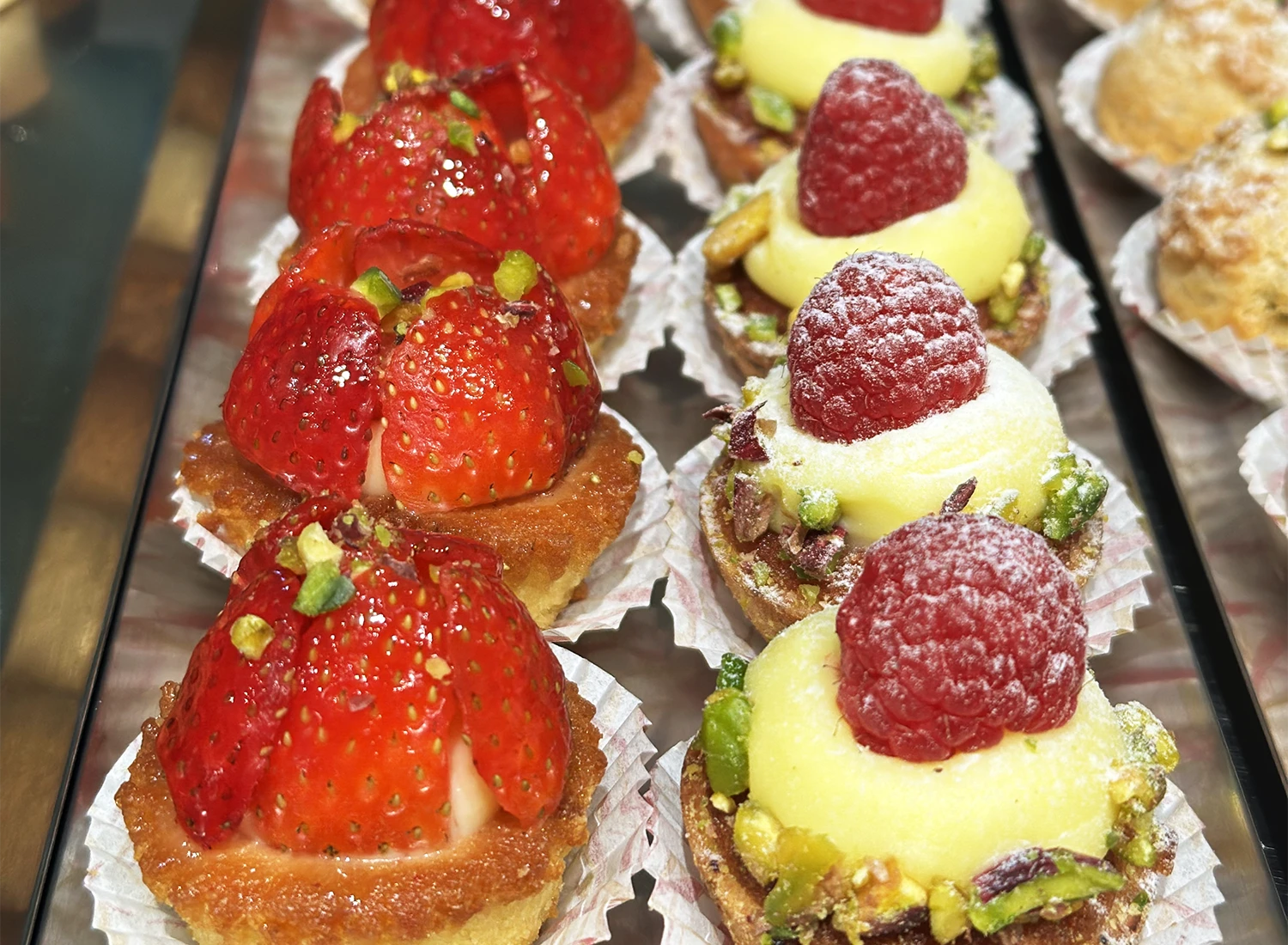 Accanto alla Sicilia, trovano spazio anche ispirazioni più contemporanee e internazionali, in particolare dalla pasticceria francese, per una proposta dolce varia, riconoscibile e mai scontata.